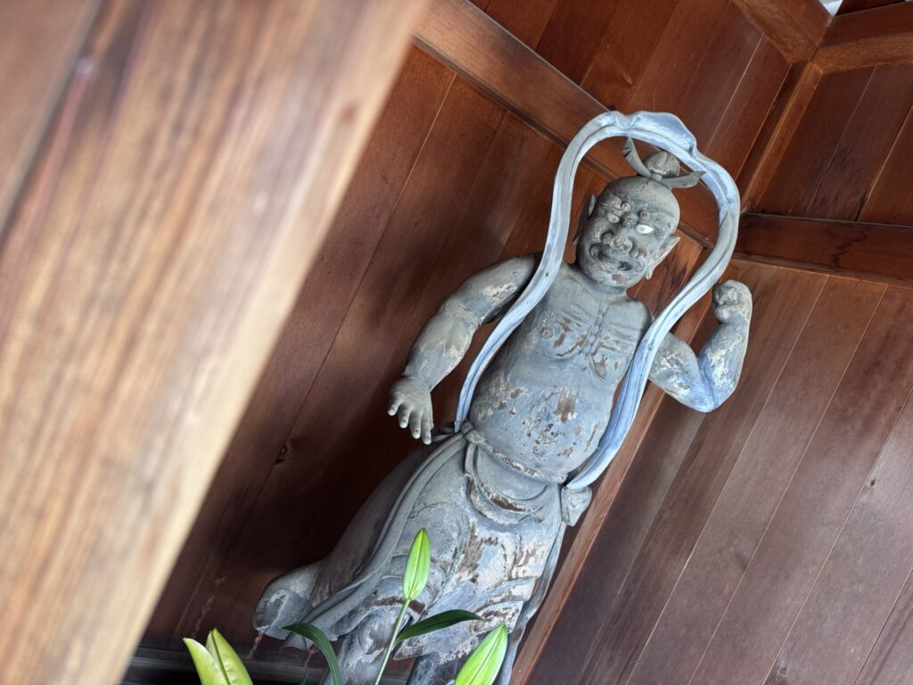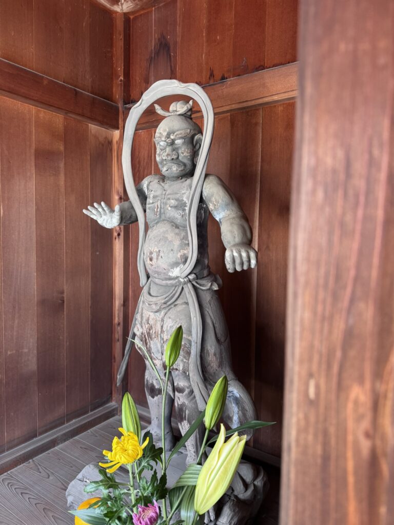 戦災により、法性寺に関わる貴重な史料の多くが消失しましたが、現在の法性寺の門を守る金剛力士像は、岡崎城の鬼門を守る守護神と伝わっています。